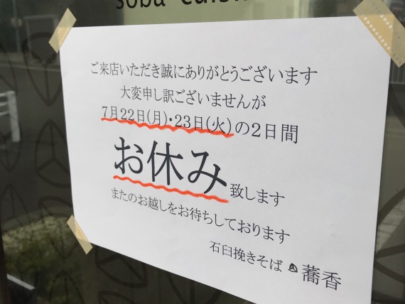 お蕎麦の売り切れについて