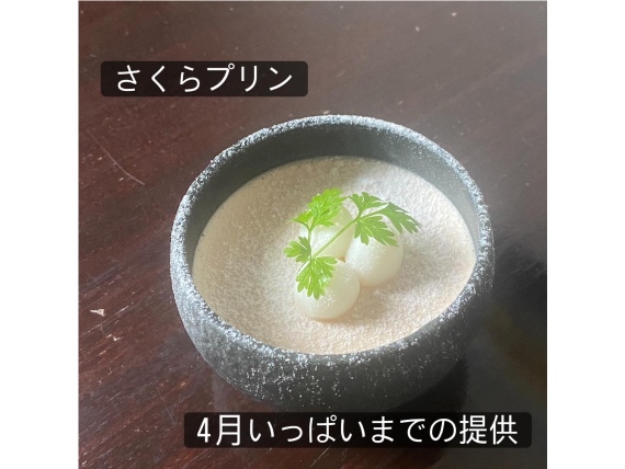 ふきのとう蕎麦の提供は4月中旬まで、桜プリンは4月いっぱいの予定です。
